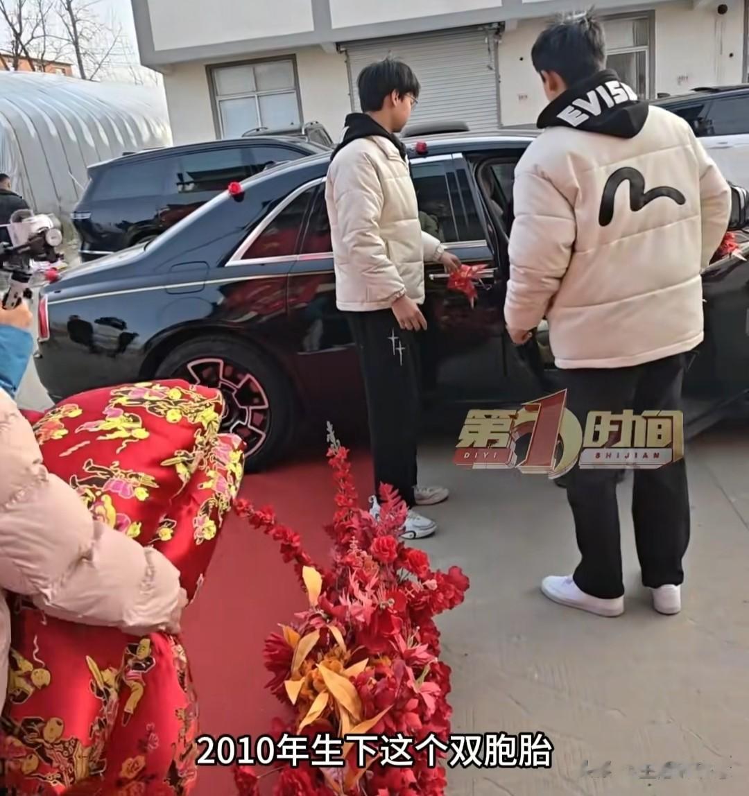 婚礼当天,双胞胎特意换上整洁的衣服,一直在现场忙前忙后,当婚车驶来后,他们一左一右陪着父亲,小心翼翼地将他送上车,嘴里还说着“爸爸要幸福”。