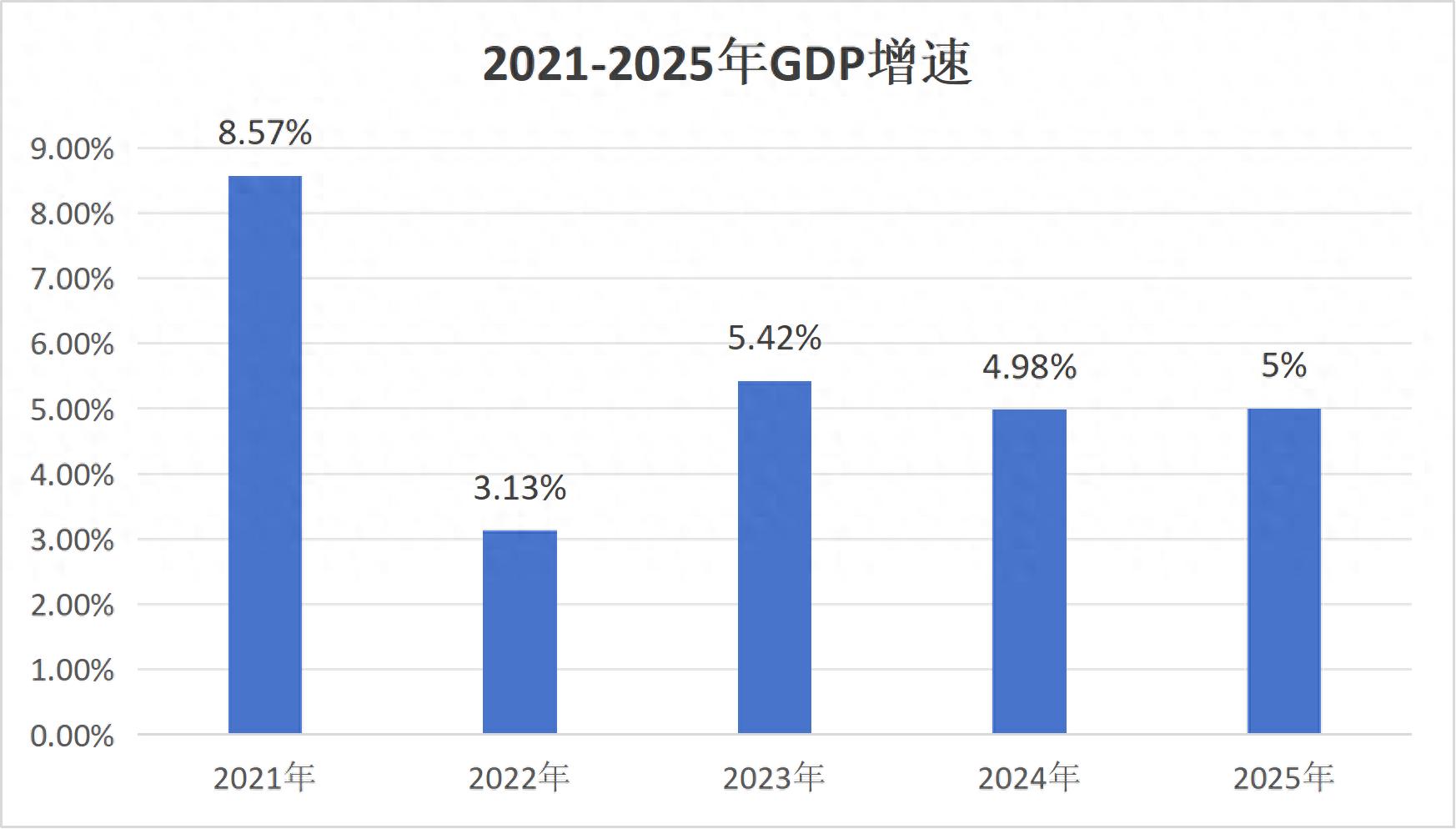 可是另一边,每年的经济依然在逐年上涨,《2025年GDP年度报告》里面公布了去年的GDP增速为5%,下面是我做的图表: