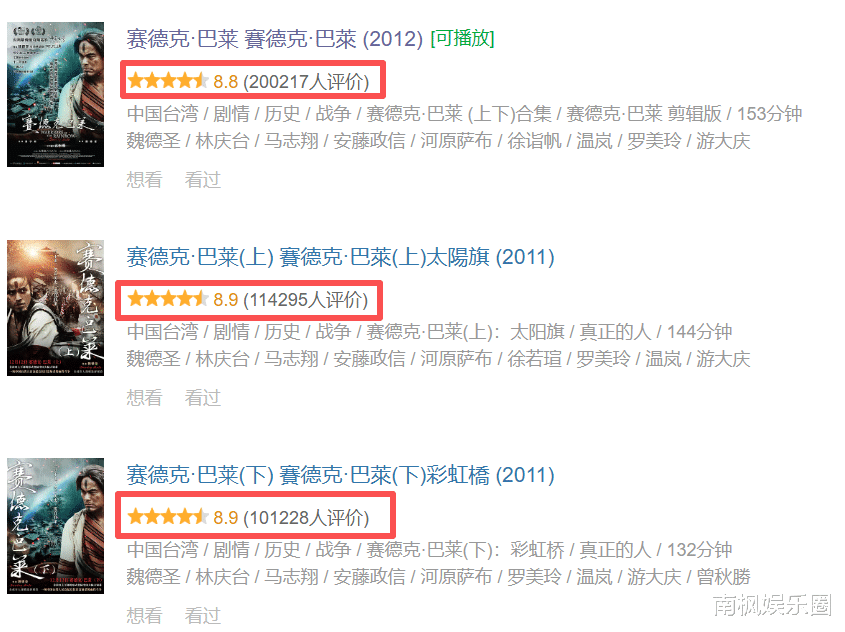 但,即便如此依旧能被20万人打出8.8的高分,未删减的上下部更是评分高达8.9。