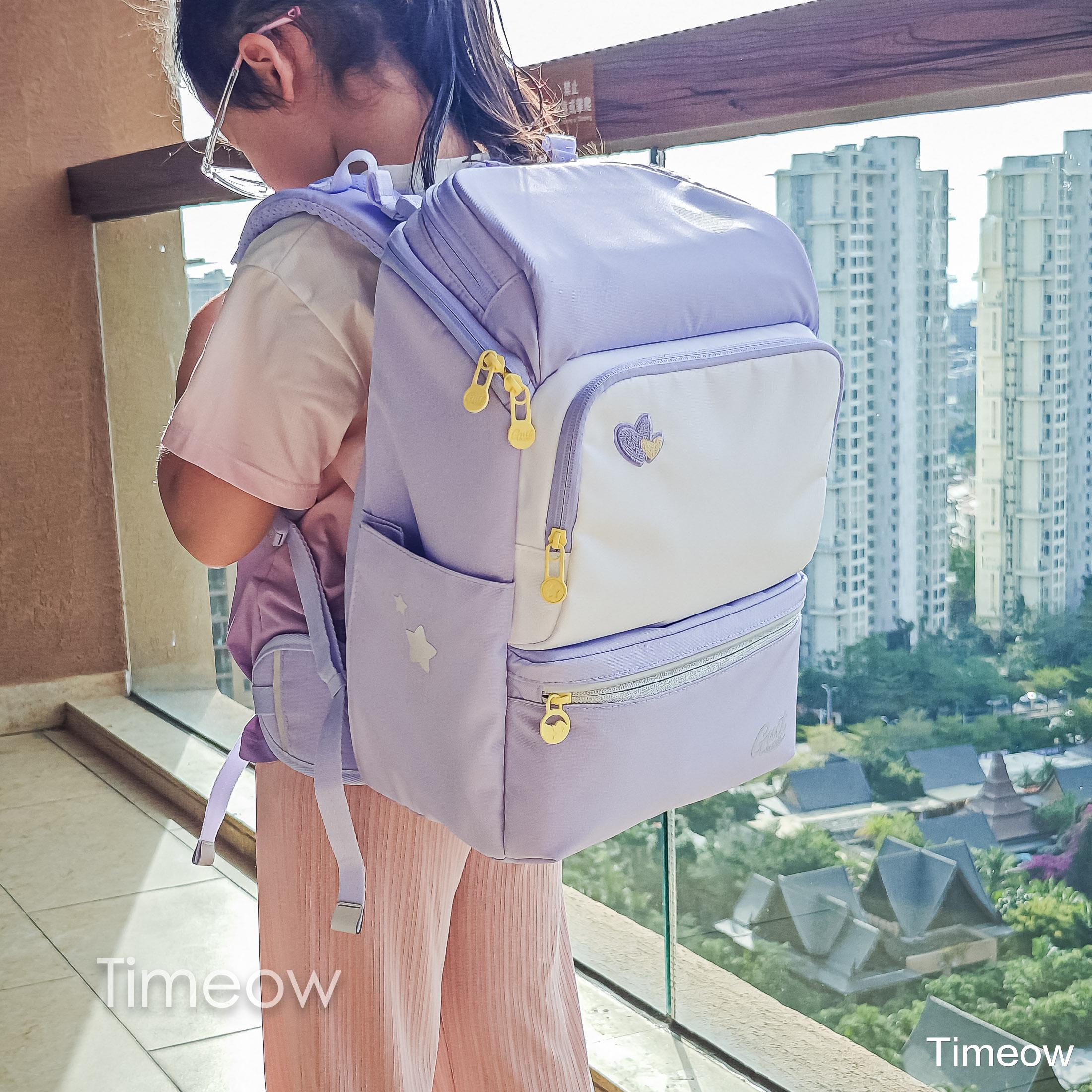 如果你也在为孩子选书包,它家这个系列的包包还挺合适,你家也是女儿的话,奶霜紫这个颜色真的温柔又气质,而这款包包轻盈又能装,护脊也专业,孩子肯定喜欢!