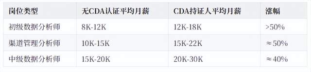 数据显示,CDA持证人薪资水平显著高于行业平均。数据来源:CDA数据分析师行业薪酬报告