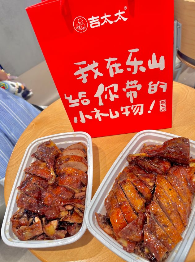 吉太太甜皮鸭在乐山甜皮鸭市场中占据了相当一部分份额,其主打整鸭切售与真空包装两种形式,覆盖即食与伴手礼消费场景。