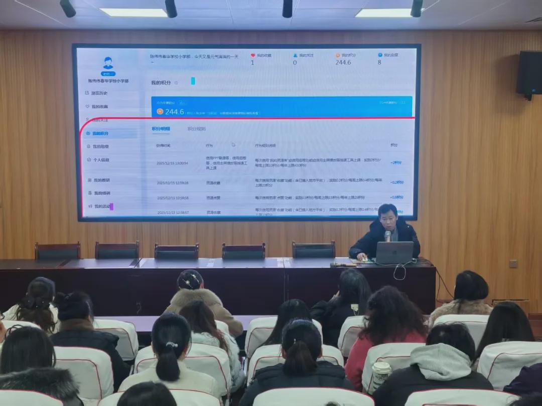 同时明确,积分不仅是教师数字化教学能力的量化指标,更是学校教学评价、评优评先、职称晋升的重要参考依据。陈主任结合平台界面,对积分查询、任务完成流程进行了分步演示,现场解答教师疑问。