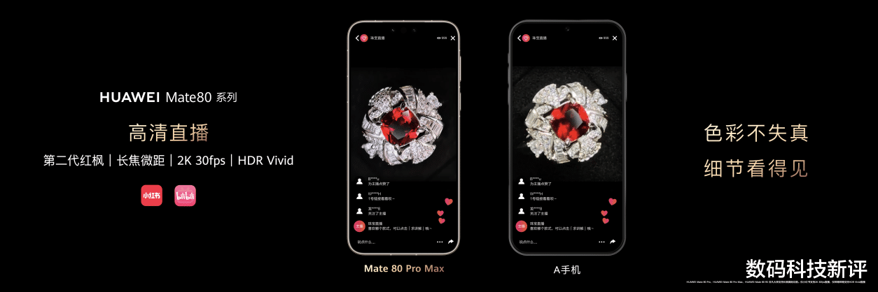 对于有直播需求的朋友来说,华为Mate 80系列还有一个亮点值得关注——鸿蒙高清直播。通过深度融合HarmonyOS 6的强大影像能力,鸿蒙版小红书与哔哩哔哩的直播效果惊艳升级。色彩还原真实自然,画面清晰度与细节表现力大幅提升。鸿蒙版小红书更将2K 30帧高清直播收入囊中;鸿蒙版哔哩哔哩则支持HDR Vivid,带来动态范围更广的震撼画面。无论是直播还是观看,体验都更上一层楼!