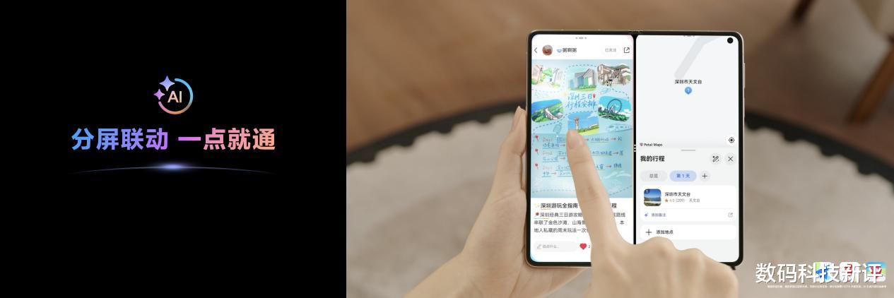 对于大屏党来说,华为Mate X7的分屏协作更是生产力神器。一边看鸿蒙版Wind金融终端的个股详情,一边监控大盘走势,信息一目了然;或者一边刷小红书攻略,选中博主们提供的地点,就能分屏唤起高德地图导航,旅行规划从未如此丝滑。当然,工作之余也要放松,华为Mate X7上的首款“一体多端”鸿蒙独家全场景游戏《太吾绘卷》,支持跨设备接续,配合麒麟芯片的强劲性能,大屏游戏体验堪称沉浸。