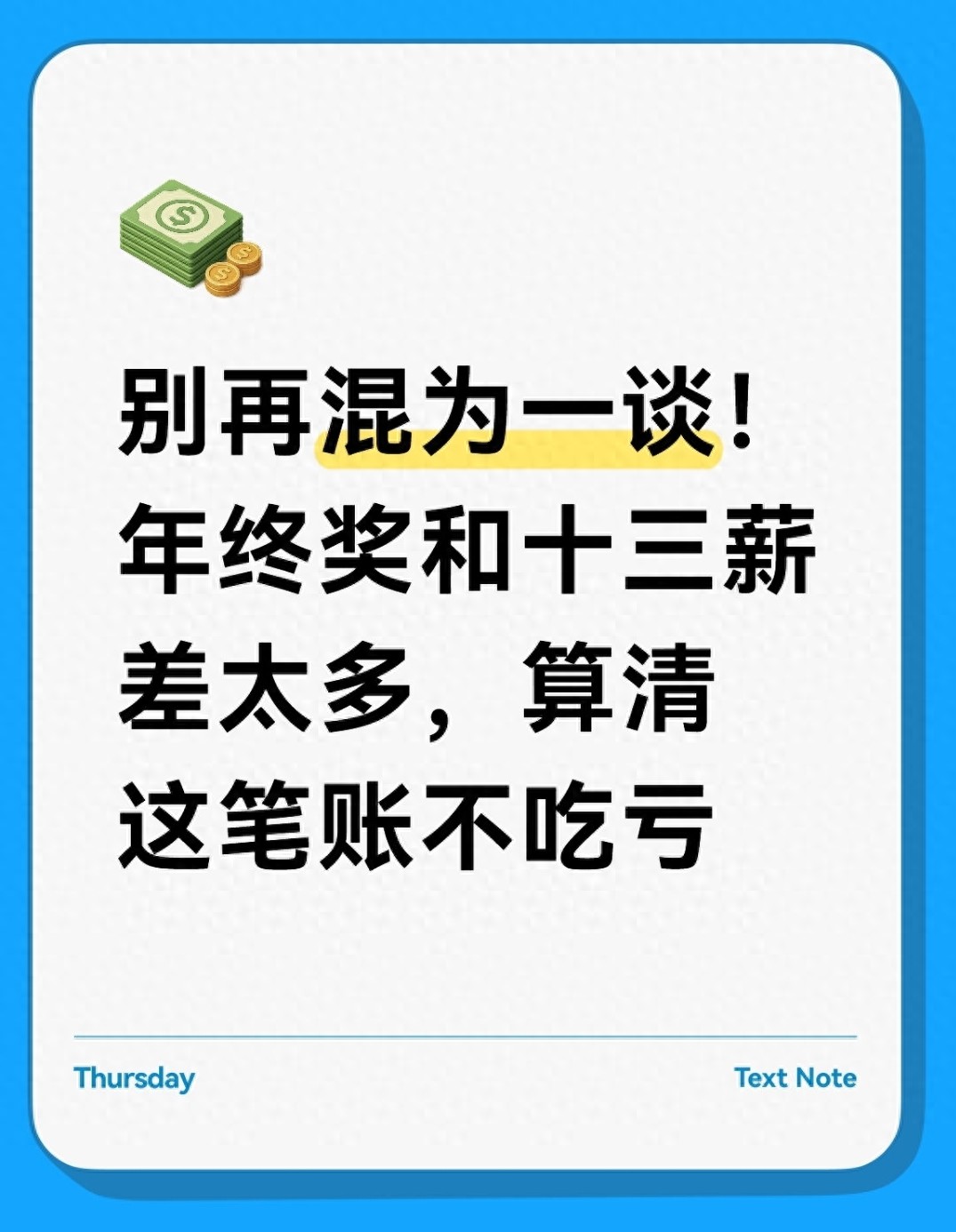 年底一到,打工人最关心的就是“年底能拿多少钱”,但很多人把年终奖和十三薪混为一谈,以为都是“年底多拿一笔钱”,实则两者的发放规则、计税方式、甚至能不能拿到手,都有天壤之别。有人拿十三薪稳稳妥妥,有人盼年终奖却竹篮打水,还有人因为搞不清两者区别,少缴了税或错失了应得的收入。今天就用大白话跟大家掰扯清楚,年终奖和十三薪到底差在哪,怎么算自己能拿多少,以及遇到公司拖欠、克扣该怎么维权。