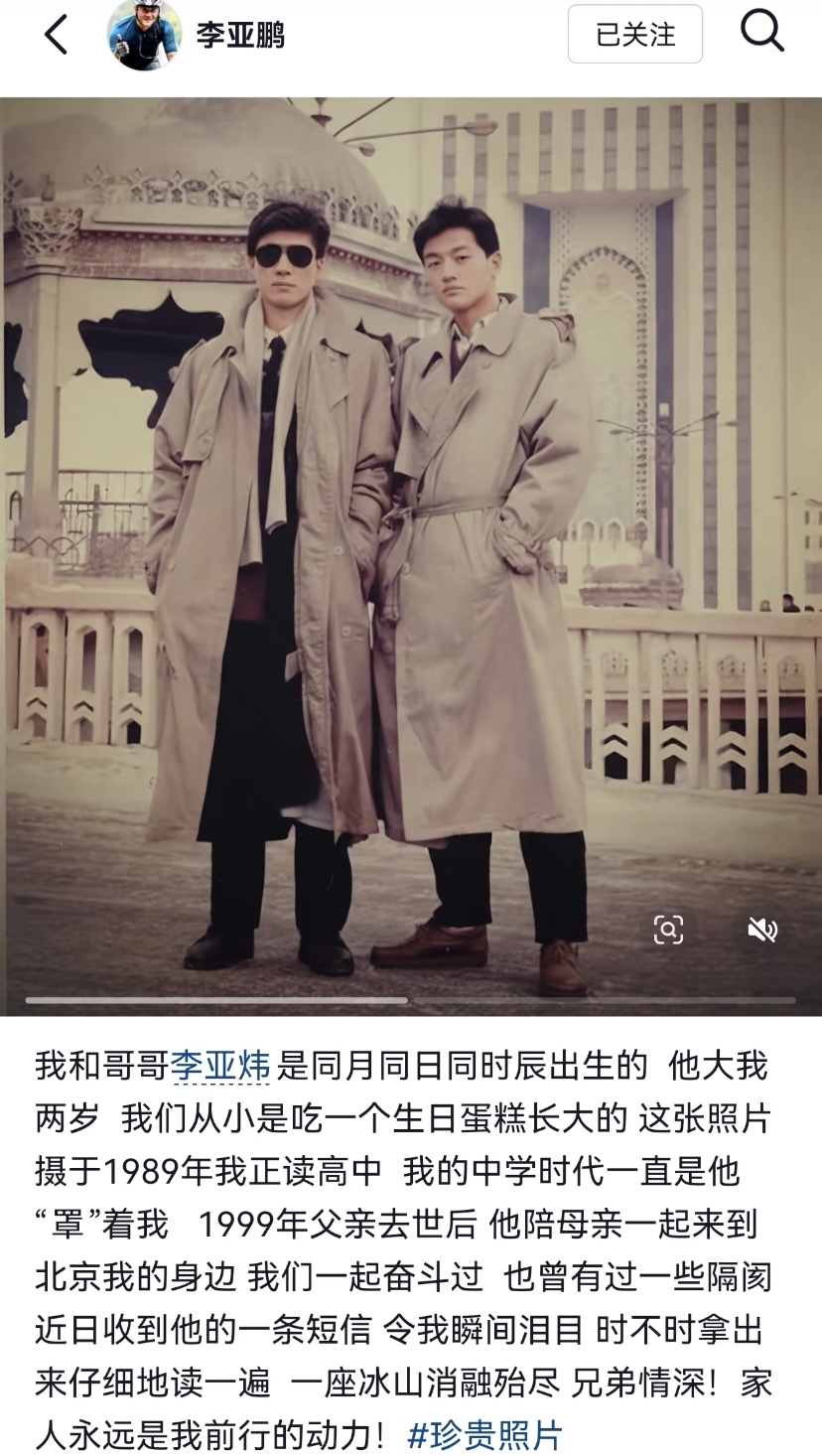 后来李亚鹏投资失败就是与哥哥李亚炜一起的。