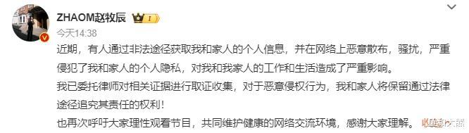 #赵牧辰发声明#