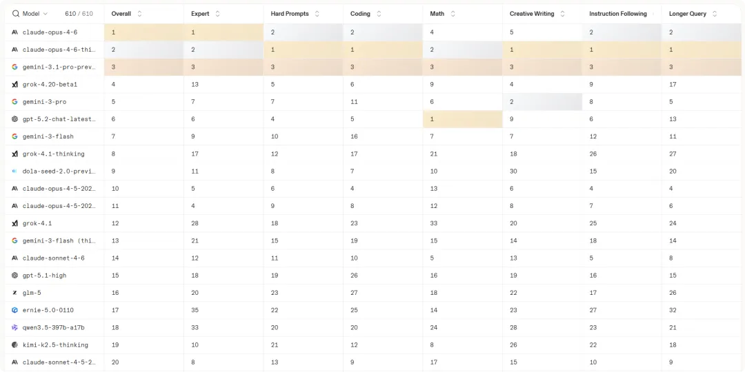 国产模型的集体亮剑,直接引发了全球权威大模型评测榜单 LMArena 的大换血。这其中,最让行业意外的是字节跳动的 Seed 2.0。作为首次亮相的旗舰,其 Dola-Seed-2.0-preview 版本不仅拿下了国内综合排名榜首,更强势挤进全球前十,位列第 9。