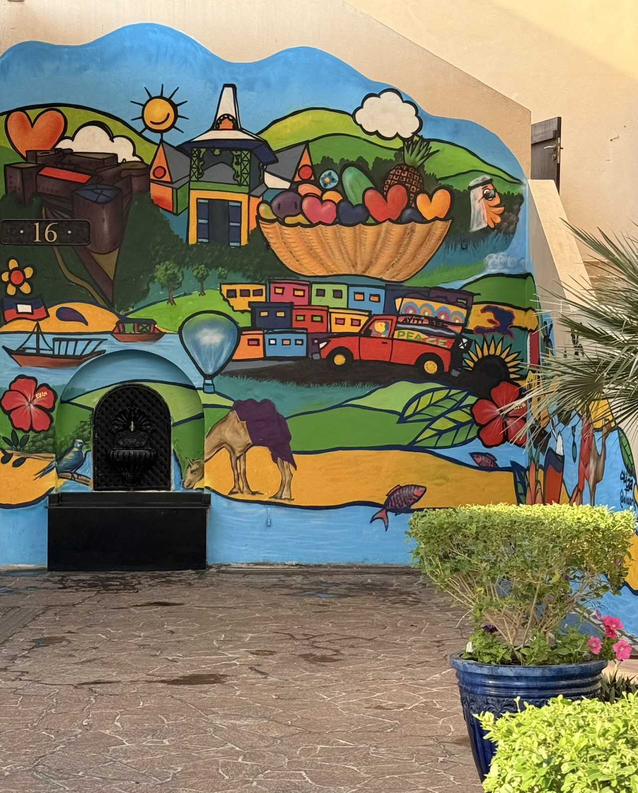 满眼的沙漠色建筑中一抹吸睛的彩色涂鸦