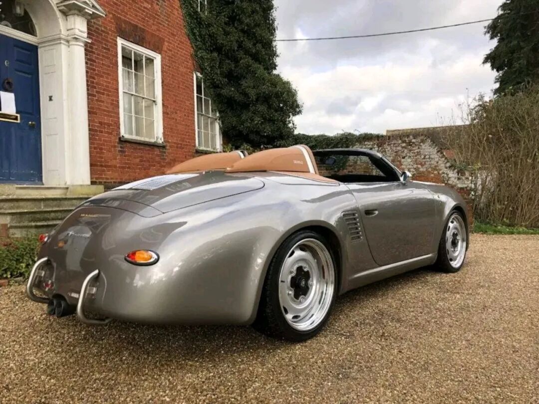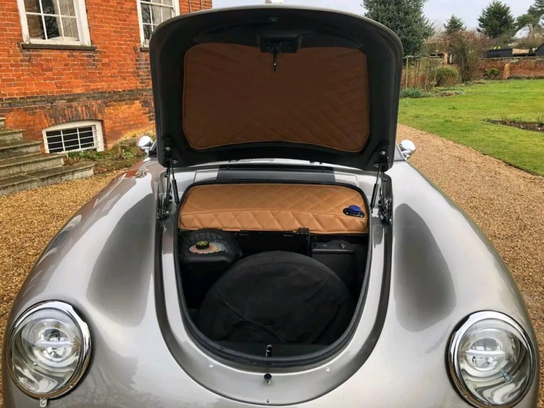 无论起始平台是哪一代,最终成品都配备了完整的定制玻璃纤维车身,复刻了356 Speedster的流畅线条。每一块车身面板都经过重新制作。设计亮点包括镀铬饰条、圆形LED头灯、泪滴式LED尾灯和造型独特的后头枕整流罩。