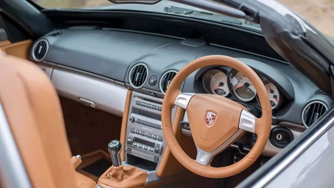内饰布局大体延续了原版Boxster的设计,但全面采用皮革和保时捷标志性的千鸟格面料重新包覆。座舱升级了加热座椅和空调控制等现代舒适配置,买家还可选装原厂信息娱乐系统的升级项目。