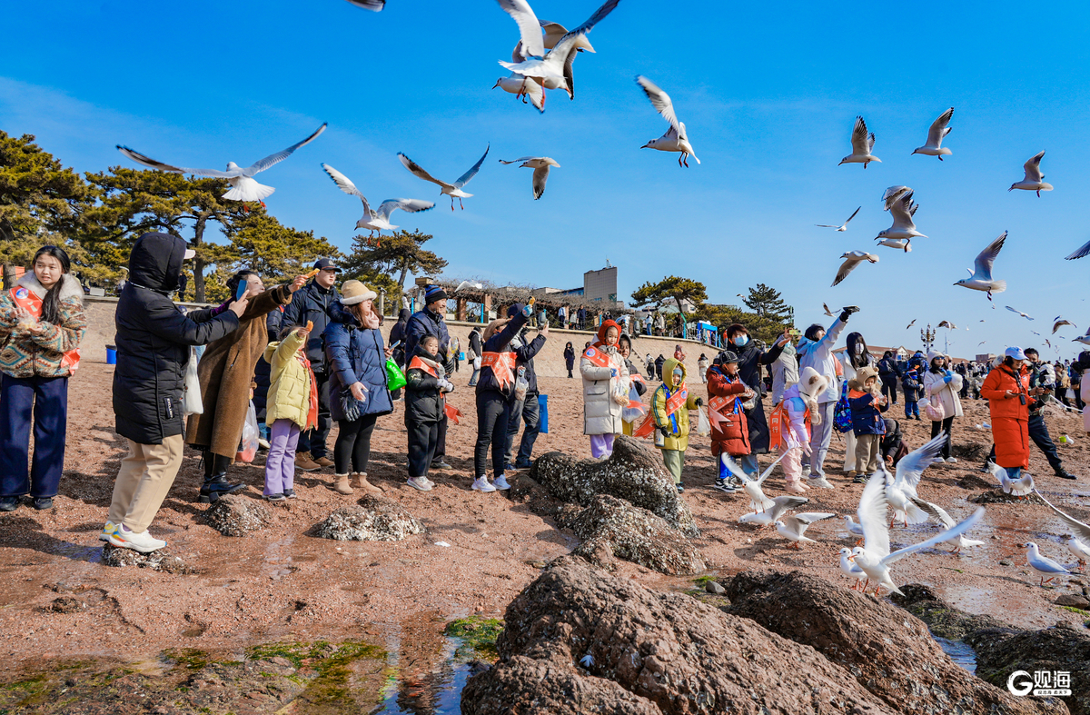 活动还特别设置了科学喂鸥环节。在专业人员指导下,参与者手持专用鸥粮,与海鸥展开温情互动。孩子们小心地将食物抛向空中,凝视海鸥轻盈接食,眼中闪烁着喜悦的光芒。这一过程不仅让青少年在亲身体验中感受自然之美、领悟保护之责,更通过“小手拉大手”的模式,带动家庭成员共同参与生态保护与文明实践。