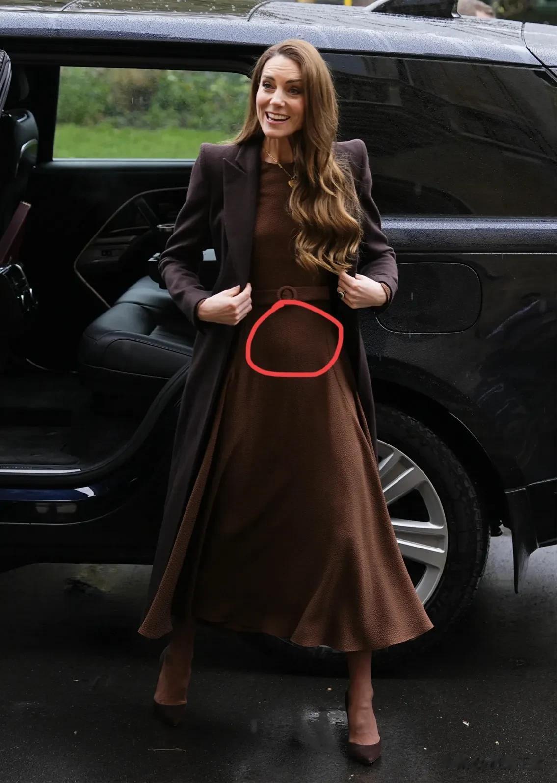 本次亮相,凯特王妃的腹部细节成为关注焦点。回顾其下车镜头可见,一袭紧身裙的腰间出现了不寻常的褶皱与鼓起。要知道凯特王妃的腰身如此纤细,看起来平坦才正常。