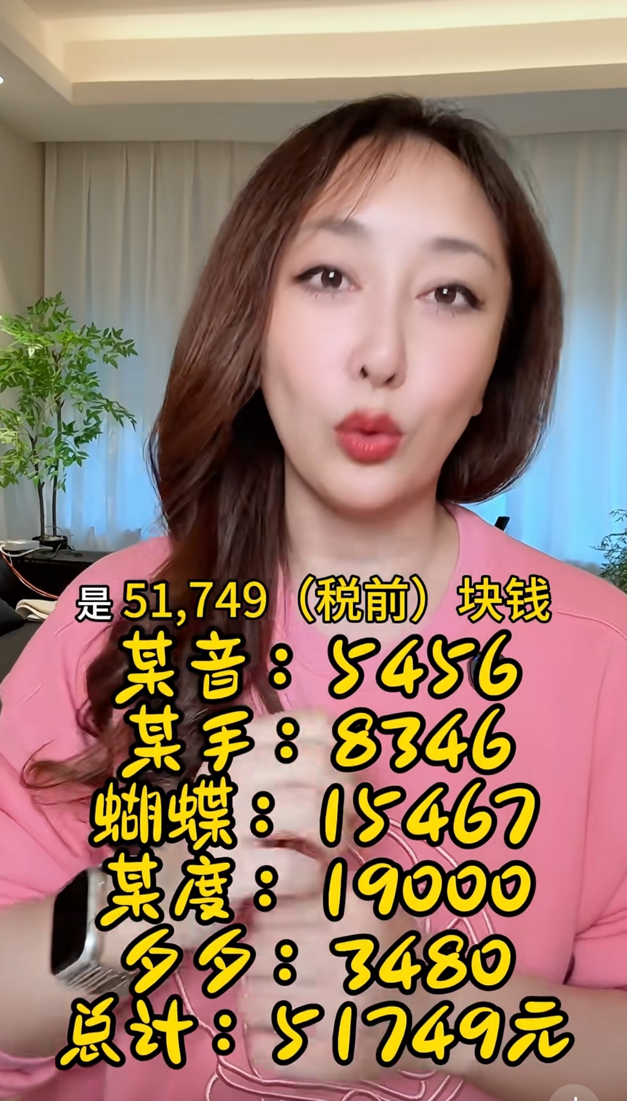 就算她每天都能有节目录,一个月也才2万多,而现实却是她一个月有一大半的时间都是没有节目录的,一个月的工资也就一万多块钱。