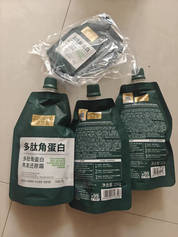 偶然知道固然堂蛋白发膜是因为同一个护小组讨论贴,有人晒出拍照图问“有没有人用过”,点进去看才发现这牌子已经出了好几个版本的包装,2018年上线那会儿还是透明瓶身配蓝色字体,现在改成磨砂质感的软管了,注册主体公司显示在深圳,但研发合作方在广东一带。