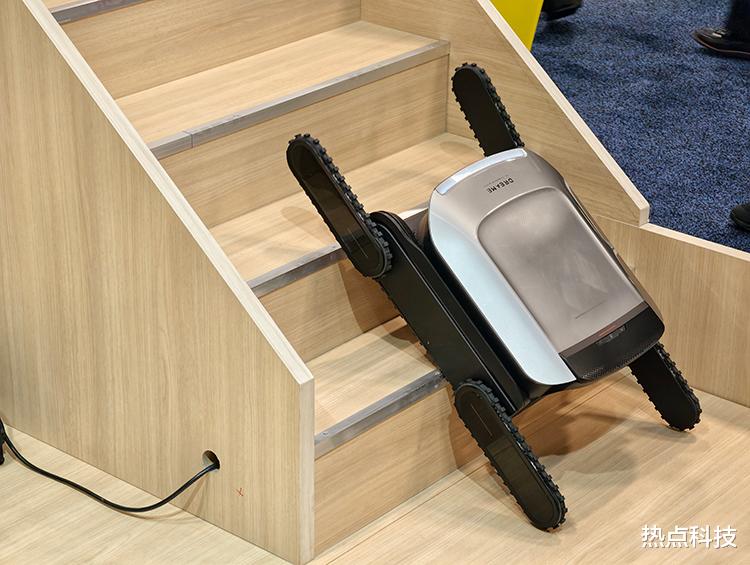 在这次展会上,追觅扫地机带来了曾在去年IFA亮相过的爬楼机Cyber X,和上一次相比,它的性能又有了一些让人惊喜的新升级。现在它能爬上最高35cm的台阶,移动速度也做到了最快0.2m/s,爬一层楼只需要27秒。它特有的三段式履带对于楼梯的适应性很强,直梯、弧形梯等等楼梯都可以流畅攀爬,可攀爬坡度也达到了42°。