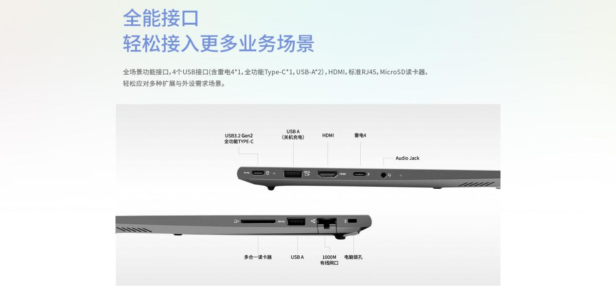 接口配置同样诚意满满,雷电4、全功能Type-C、HDMI及RJ45网口一应俱全,外接投影仪、高速移动硬盘时无需额外转接,客户现场演示再也不用慌慌张张找转接头。WiFi6与蓝牙5.2的组合,更让线上会议告别卡顿掉线,远程协作效率倍增。