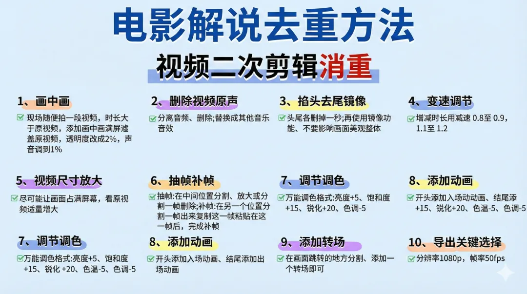 四、去重工具:这是很多账号被限流的真正原因不少电影解说账号,看起来“剪得很勤奋”,但播放始终起不来,本质原因是去重不彻底。