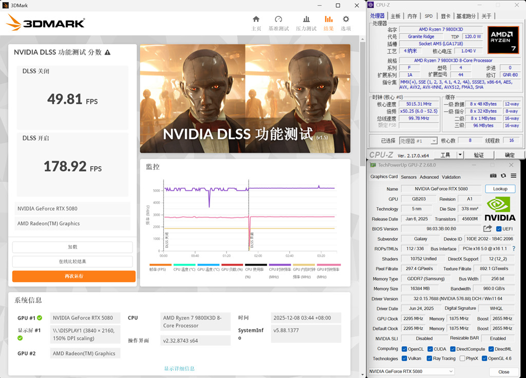 从包装上看到,RTX5080支持光线追踪、DLSS 3、REFLEX等技术。