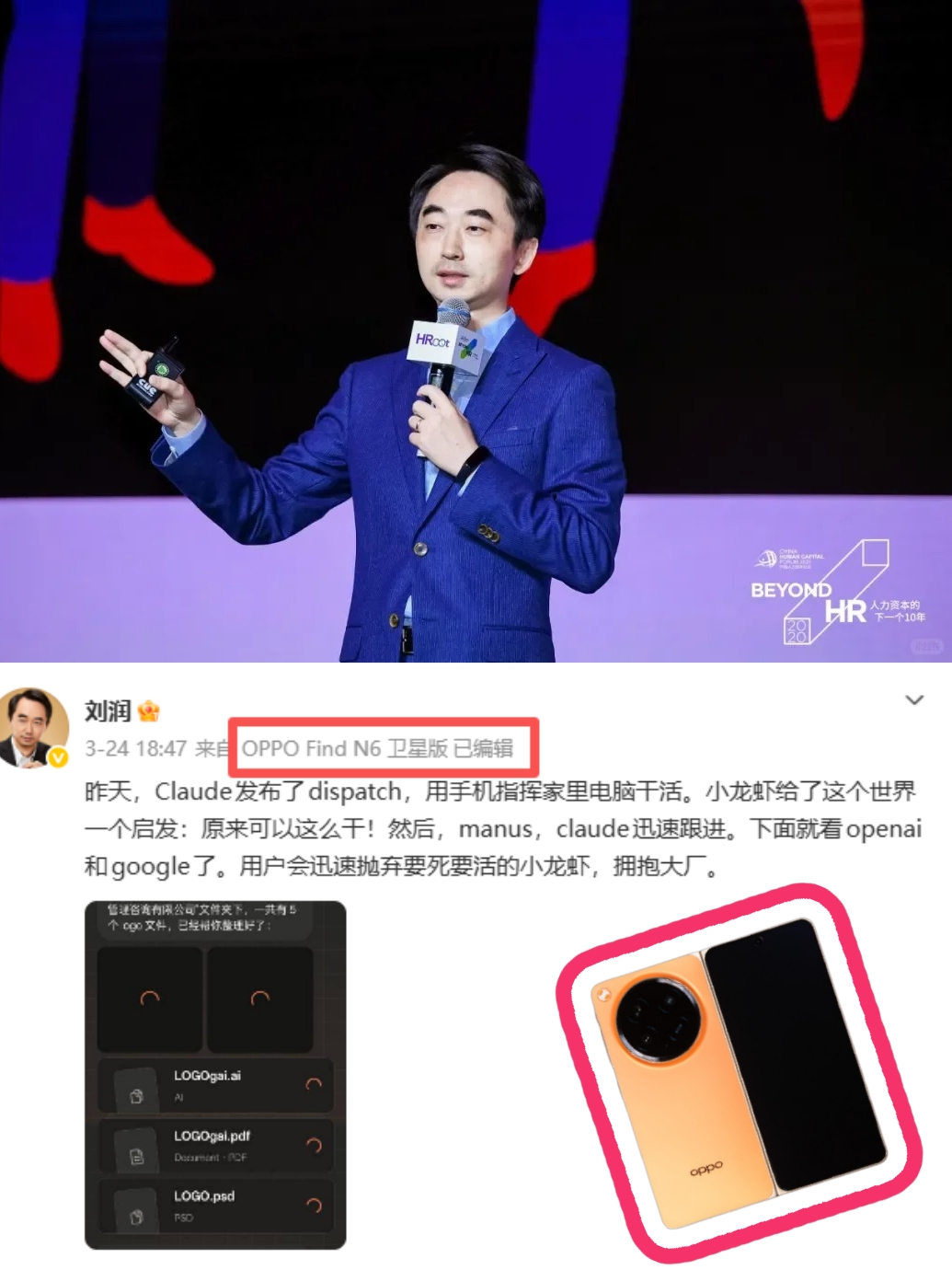 我后来留意了一下,确实——刘润、吴声这些平时关注的人,手机确实全换成了折叠屏。这几天刘润发的文章和视频,我看小尾巴都是Find N6📱