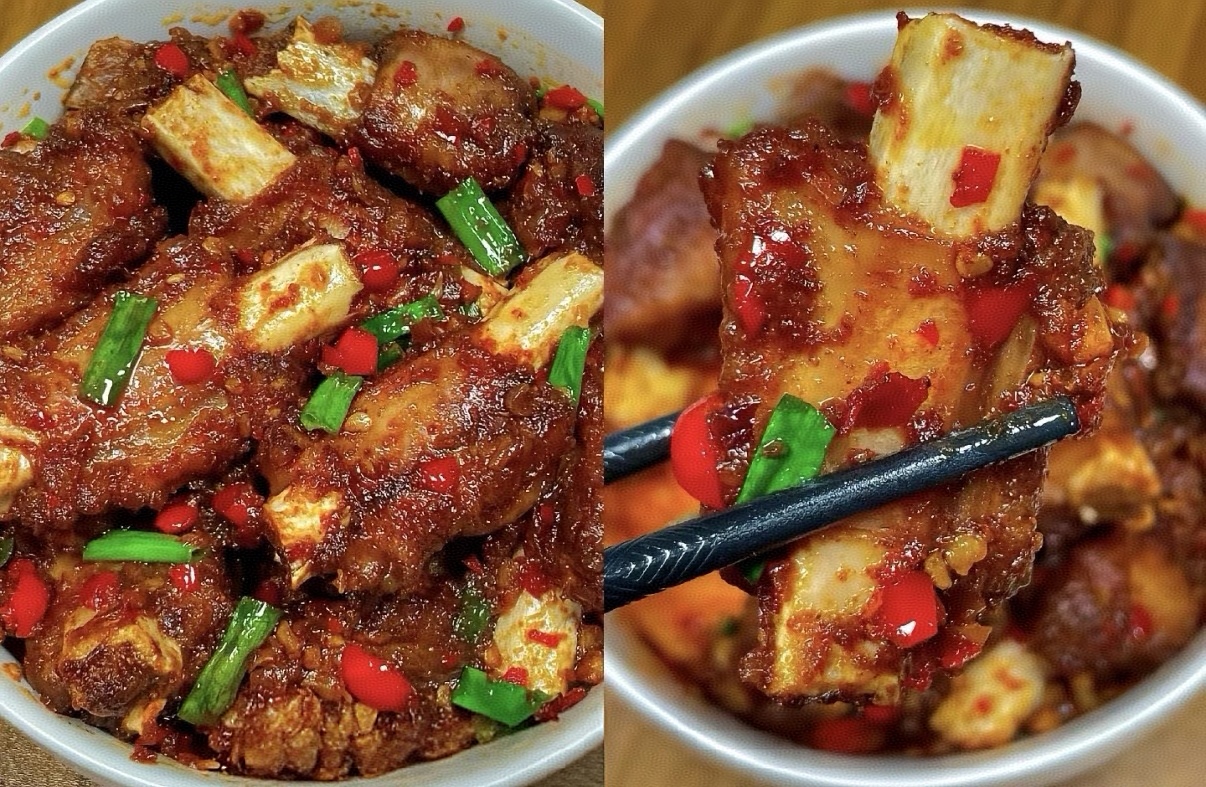 小排剁成小段,泡半小时去血水,焯水后用厨房纸吸干水分。加一勺生抽、半勺老抽、少许淀粉抓匀,腌制15分钟让排骨“喝饱”调料。锅里倒油烧至六成热,下排骨炸到金黄酥脆捞出。另起锅放蒜末、小米辣炒香,加两勺孜然粉、一勺辣椒粉(不吃辣可以不加),再把排骨倒进去翻炒,让每块排骨都裹上孜然和蒜香。最后撒一把葱花,出锅前再“呲啦”淋一勺热油,那香味能飘三层楼!
