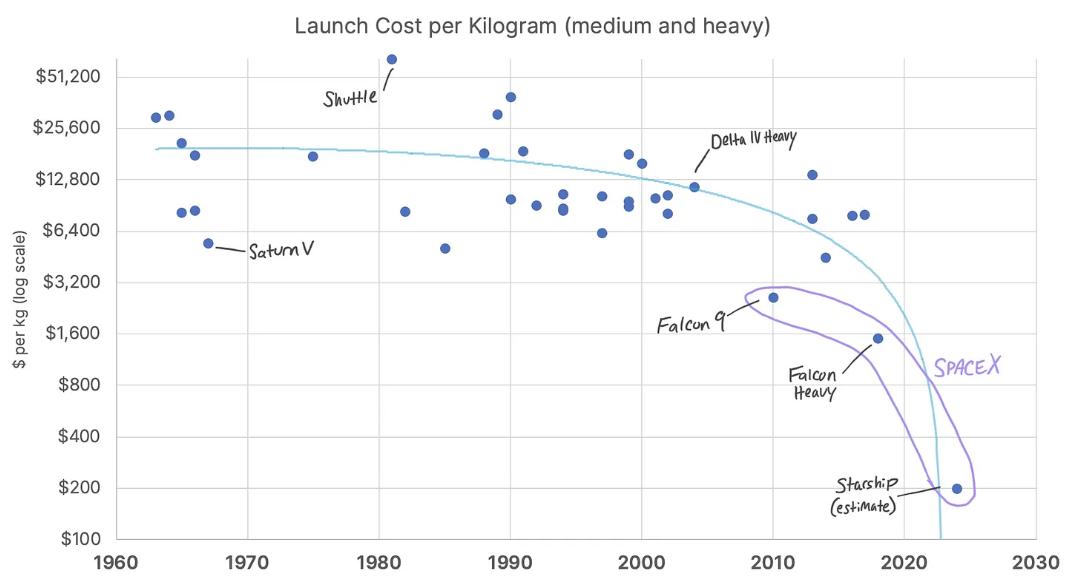 图丨每公斤发射成本的变化(来源:Max Olson)