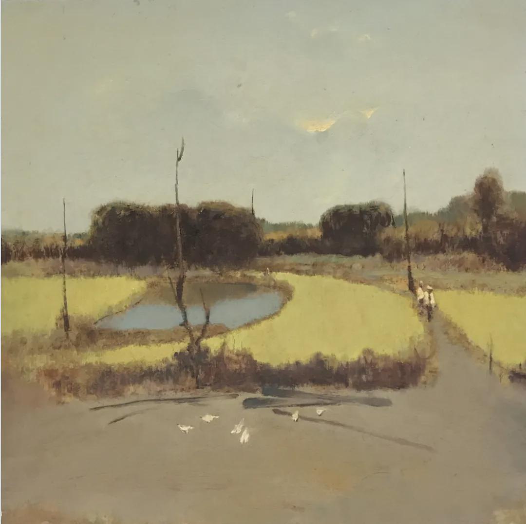 胡旺《陌上秋黄》木板油画 40×40cm 2025年