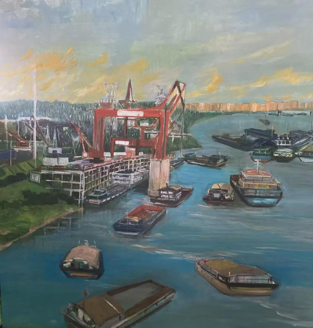 欧阳爱香《湘江货运码头》120×120cm 2025年