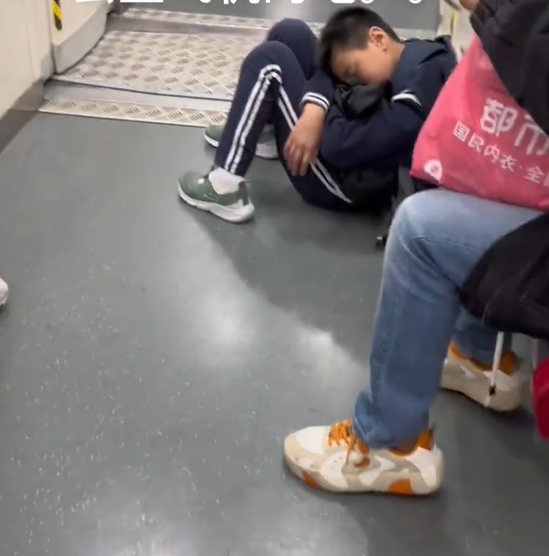 我们不妨代入一下场景。广州地铁3号线被称为“拥挤线”,人挤人、噪音大、光线亮。一个小学生,能在这种摇晃嘈杂、甚至有些闷热的环境下,在硬邦邦的地板上进入深度睡眠,连终点站的广播和人群走动都吵不醒,只有一种解释:他的身体已经透支到了极限,大脑强制开启了“省电保护模式”。
