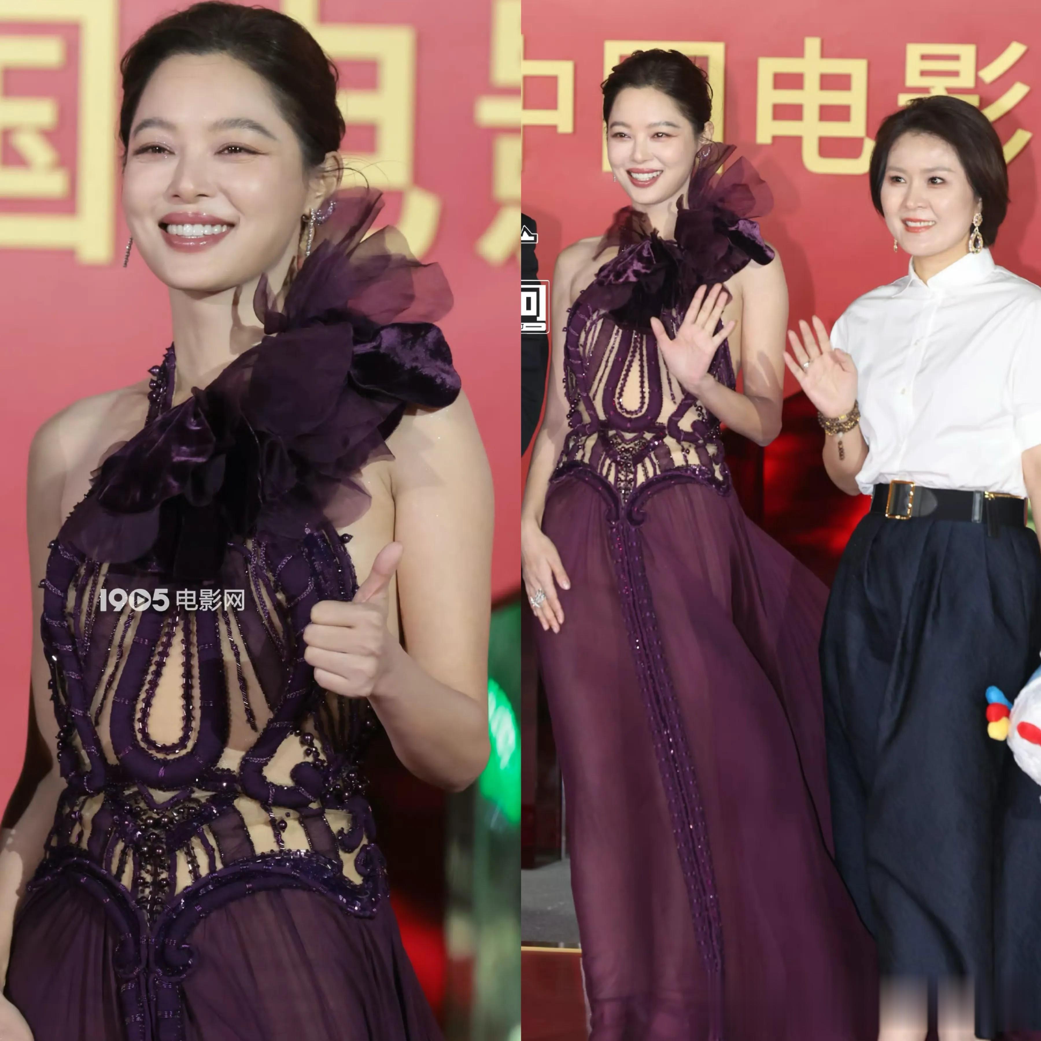 最近一直忙着各种路演活动的她,居然圆润了不少,脸上个手臂都肉嘟嘟的。她的时尚驾驭能力一向是数一数二的,但是今晚这条紫色裙子在领口处的设计,有种说不出的土气。
