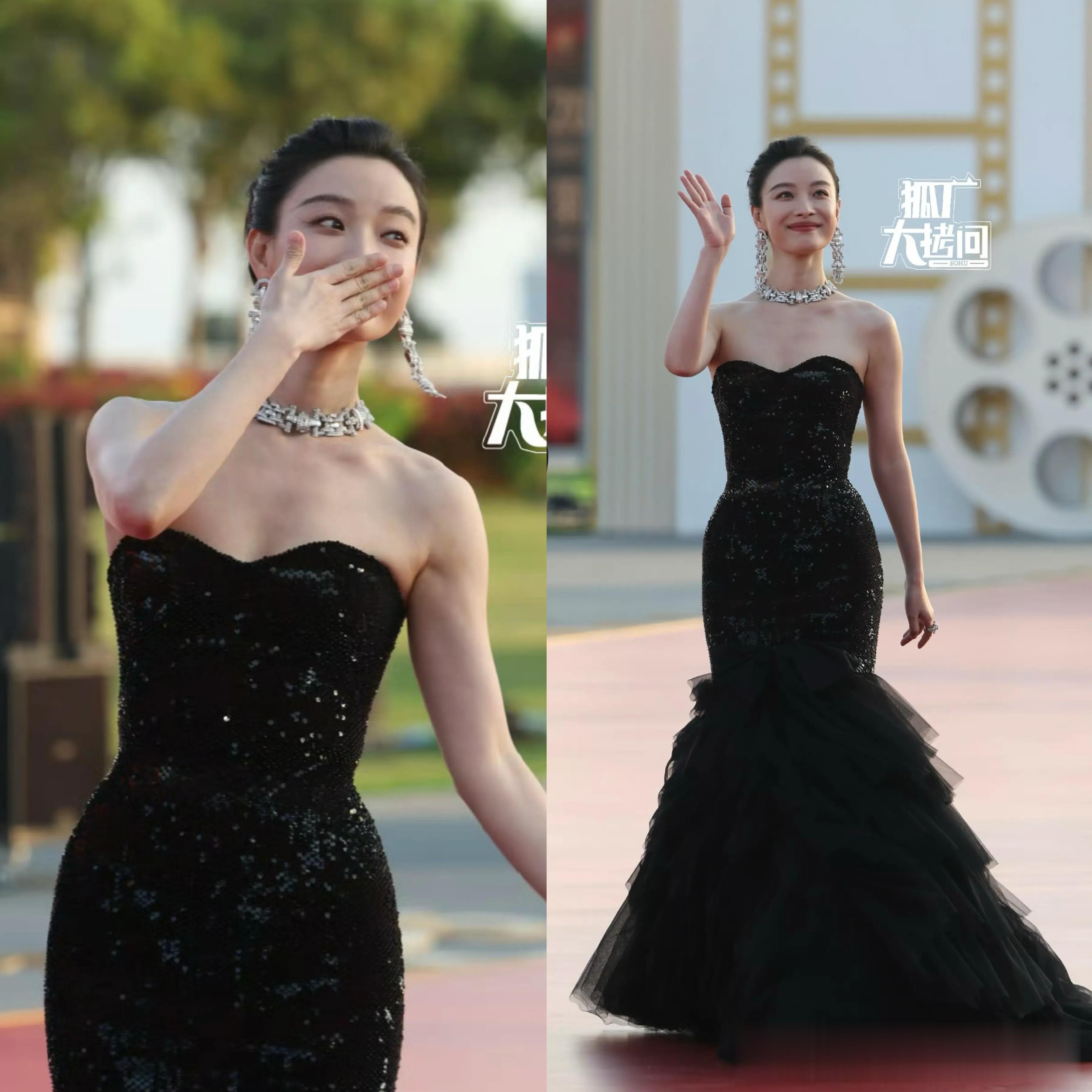 在红毯上,她还随着音乐扭了一段舞蹈,尽显绝佳的腰臀比,她还向着现场观众,抛了个飞吻,那种游刃有余的自信,让她光彩照人!