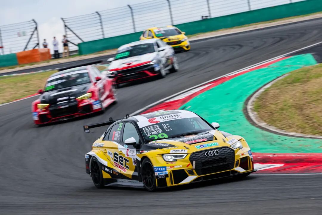 赛季第五站重返上海嘉定,面对多变天气与多次安全车出动的复杂局面,111号吕逸飞/吴泓骅、777号车组曹丹阳/李翁勣/王鹏、888号王宇帆/张漪雯三大车组实现全员完赛。与此同时,新晋加盟的29号车组杜佳霖/倪泽强/史殷荣亦在CTCC中国杯TCR组别中顺利完成两回合赛事,斩获积分。