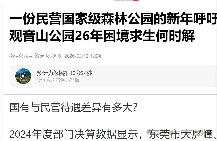 广东观音山国家森林公园(东莞观音山)的二十六年困境,绝非个例,而是民营经济在部分地区发展环境的真实缩影。