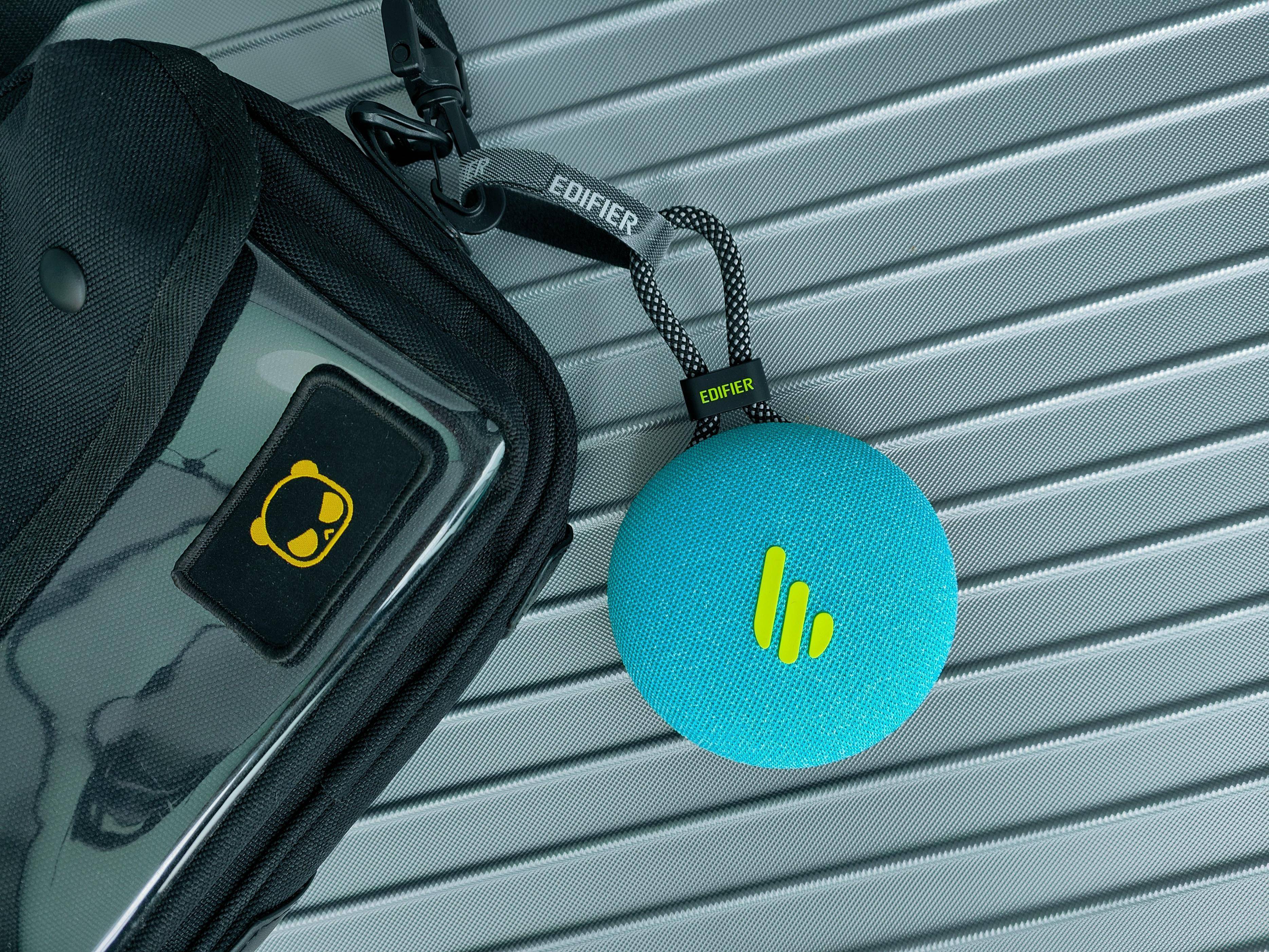 优点方面:这款蓝牙音箱采用了简约的外观设计,机身紧凑,质感细腻,配备双挂绳结构,可以根据需求调节角度,方便悬挂在不同地方。底部增加了防滑硅胶垫,增强了桌面摆放时的稳定性,避免滑动。