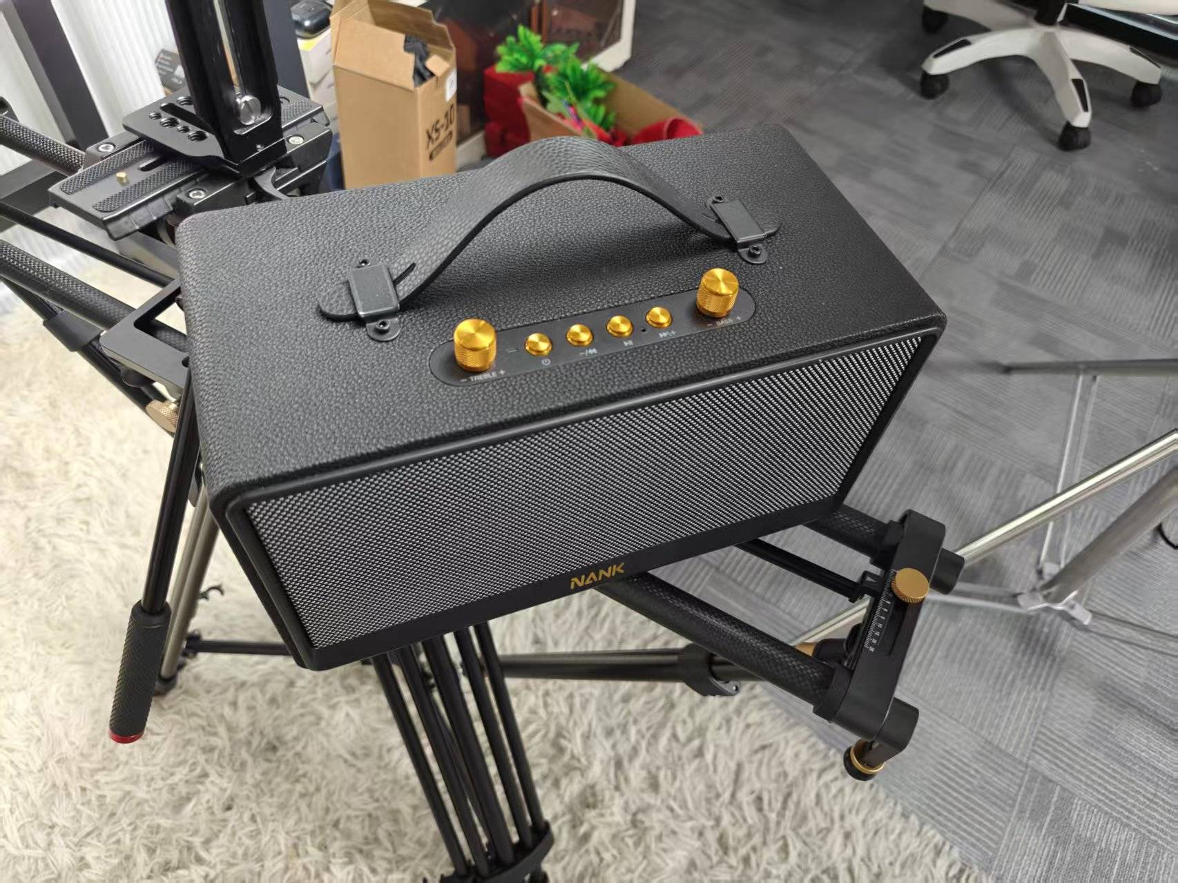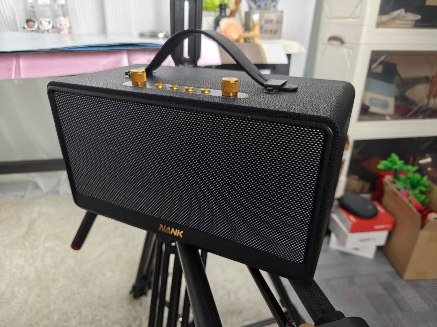 优点方面:这款蓝牙音箱采用了经典的复古设计,皮革纹理与金属网罩的搭配,既提升了质感,又展现了独特的美学。