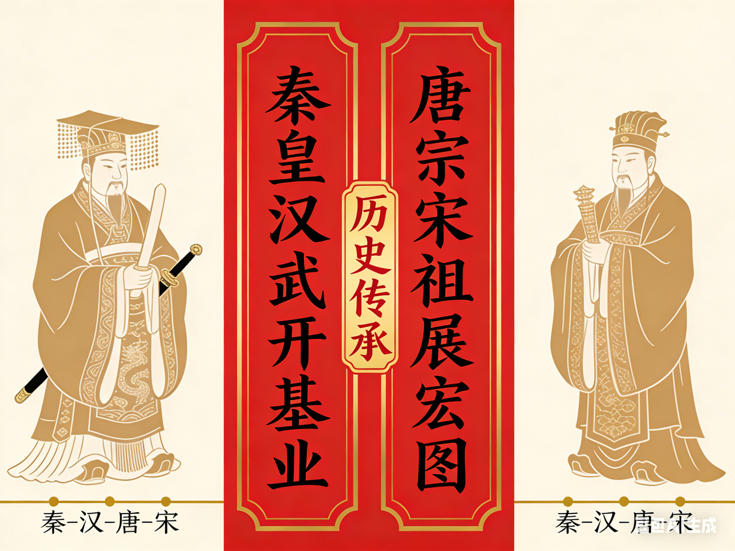 春联最早起源于周代的桃符。古人认为桃木能驱邪避灾,便将一寸宽、七八寸长的桃木板,刻上降鬼大神“神荼”和“郁垒”的名字或画像,悬挂于大门两侧,祈求镇宅辟邪、除灾纳福。此时的桃符,核心是民俗信仰的载体,尚无文字联语,却为春联的诞生奠定了基础。