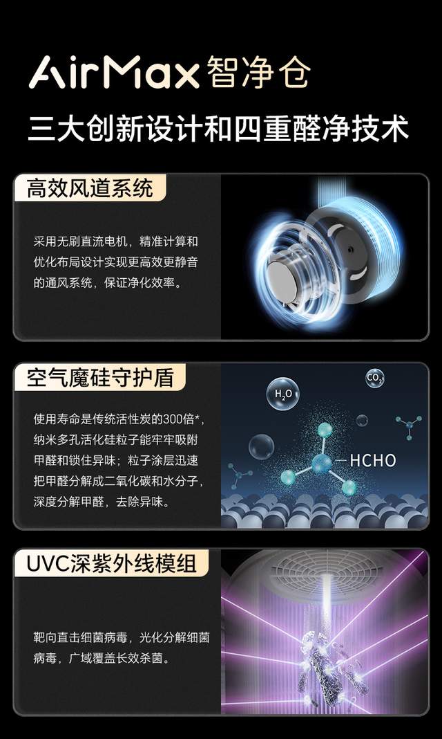 2. 全场景净化:消杀 + 除味 + 滤尘,全家防护拉满