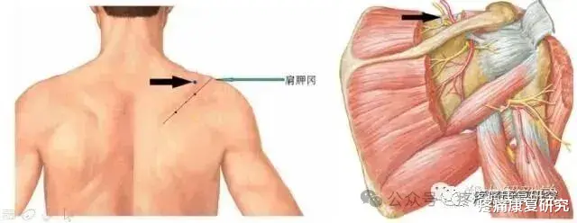 探查定位:沿肩胛冈上缘滑动,重点定位肩胛上切迹(内1/3与外2/3交点下),避血管。