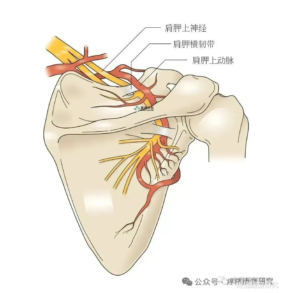 韧带因素:肩胛横韧带肥厚、钙化或异常纤维束带压迫