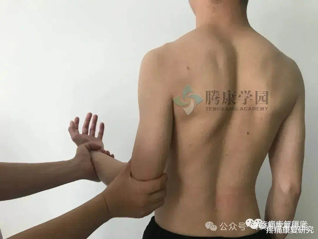 嘱患者上肢自然下垂,然后做0-30°小范围外展动作,检查者在患肢肘部施加向下的对抗阻力。