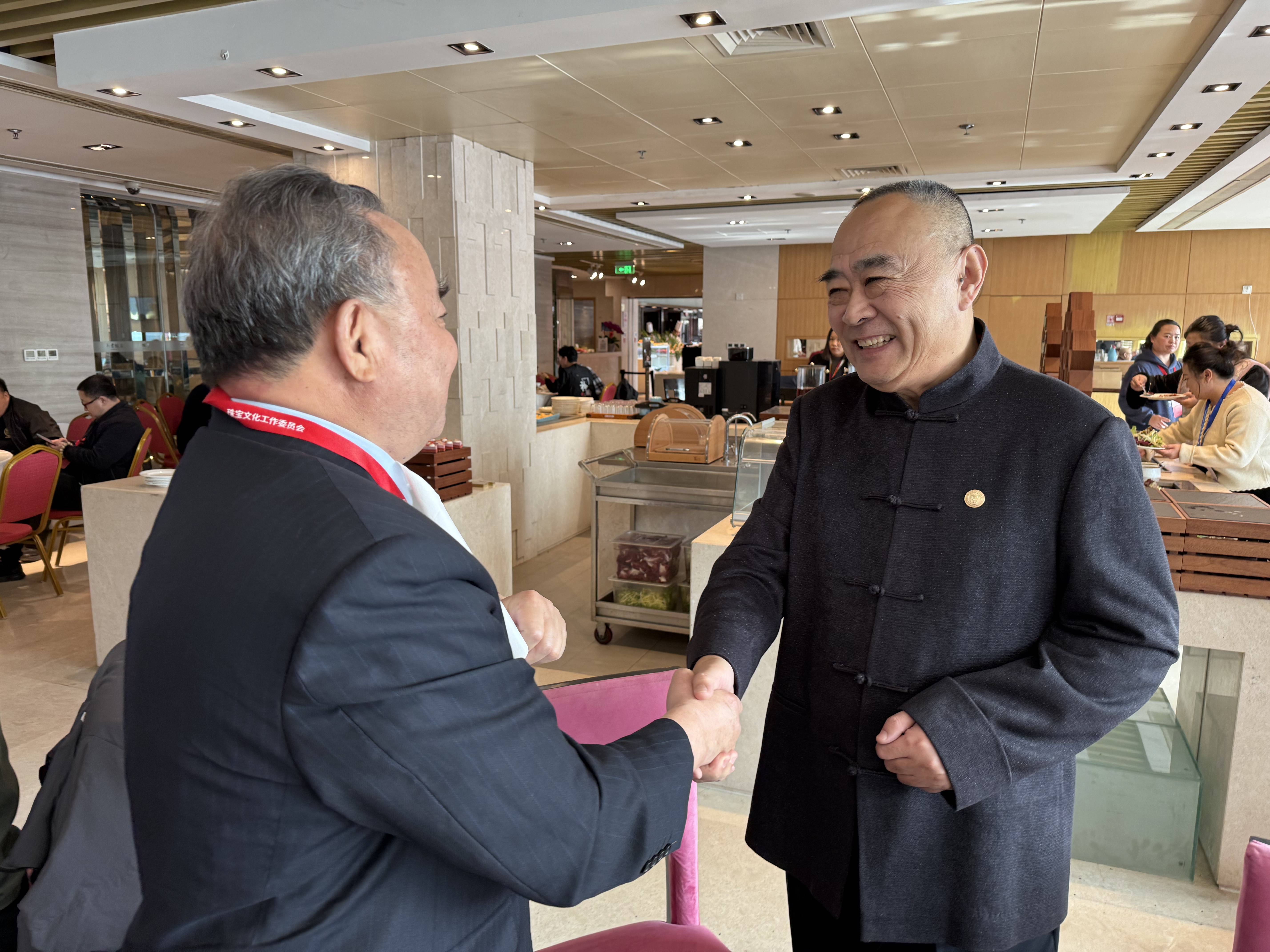 大会期间,北京收藏家协会会长高博达与罗大友进行了亲切深入的交流。高博达会长对罗大友受聘担任茶文化研究分会会长致以诚挚祝贺,高度肯定其深耕茶文化非遗传承数十年所取得的卓越成就,同时围绕茶文化藏品的挖掘、保护与传播,以及协会如何借助茶文化资源丰富收藏领域生态等话题展开探讨;罗大友也对协会的信任与认可表示感谢,他表示愿与协会携手,以茶文化研究分会为纽带,整合各方资源,让茶文化收藏与非遗传承相互赋能。
