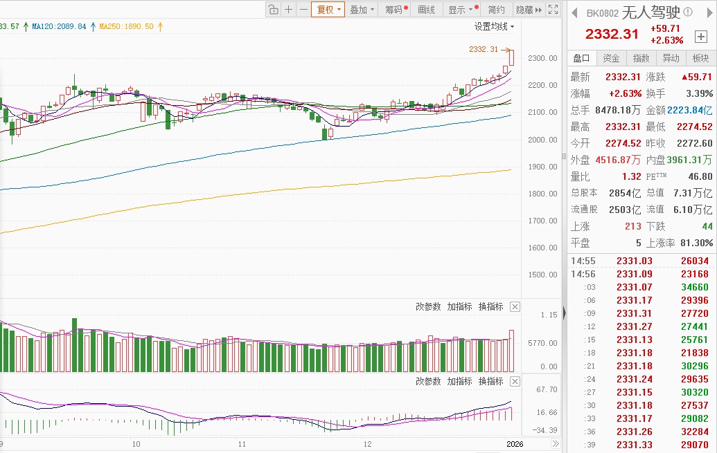 【环球网财经综合报道】1月6日,A股市场自动驾驶板块迎来强劲爆发,多只个股在极短时间内封死涨停板,显示出资金对该赛道的高