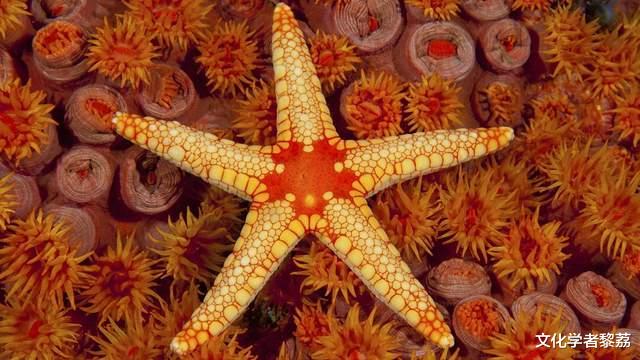 海水轻柔地抚过我紫粉相间的纹理,带来远方的讯息。我没有一个念头,却知晓一切生存所必须知晓的事。我的缓慢,是我的从容;我的简单,是我的深邃。在这颗蓝色星球上,生命以千万种方式书写自己。有人仰望星空寻找意义,而我,本身就是一颗行走的星。我不发出光亮,却自身就是星辰的形态,以我独有的、五重的对称,在这永恒的深蓝里,书写着关于生命另一种可能的、安静的证词。我要在五条手臂的末端,同时点亮五只红点,像五座迷你灯塔,在黑暗里一闪,一闪,提醒那些自以为唯一的智慧:“看,我在这里。没有大脑,却照样——把星空,穿在身上。”
