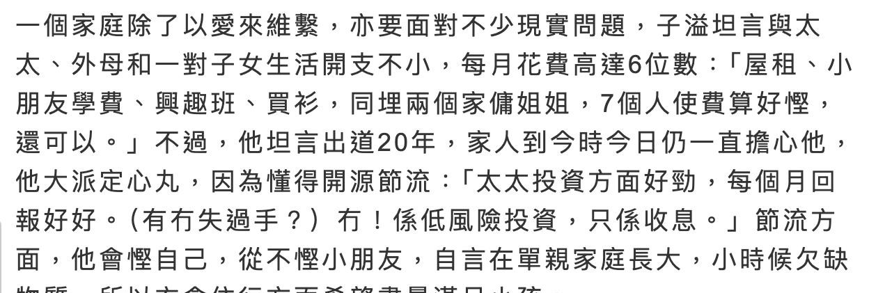 他倒是挺拼,见导演、约制作人,圈子越拓越广,只要有戏做,能上的都上。杨怡也没闲着,虽然现在主要在家带孩子,但投资眼光准,每月都有进账,多少能贴补家用。她以前是TVB的一线花旦,片酬不低,可结婚后节奏慢了下来,重心转到了家庭。现在一家子开销六位数起步,重担自然落在了罗子溢肩上。
