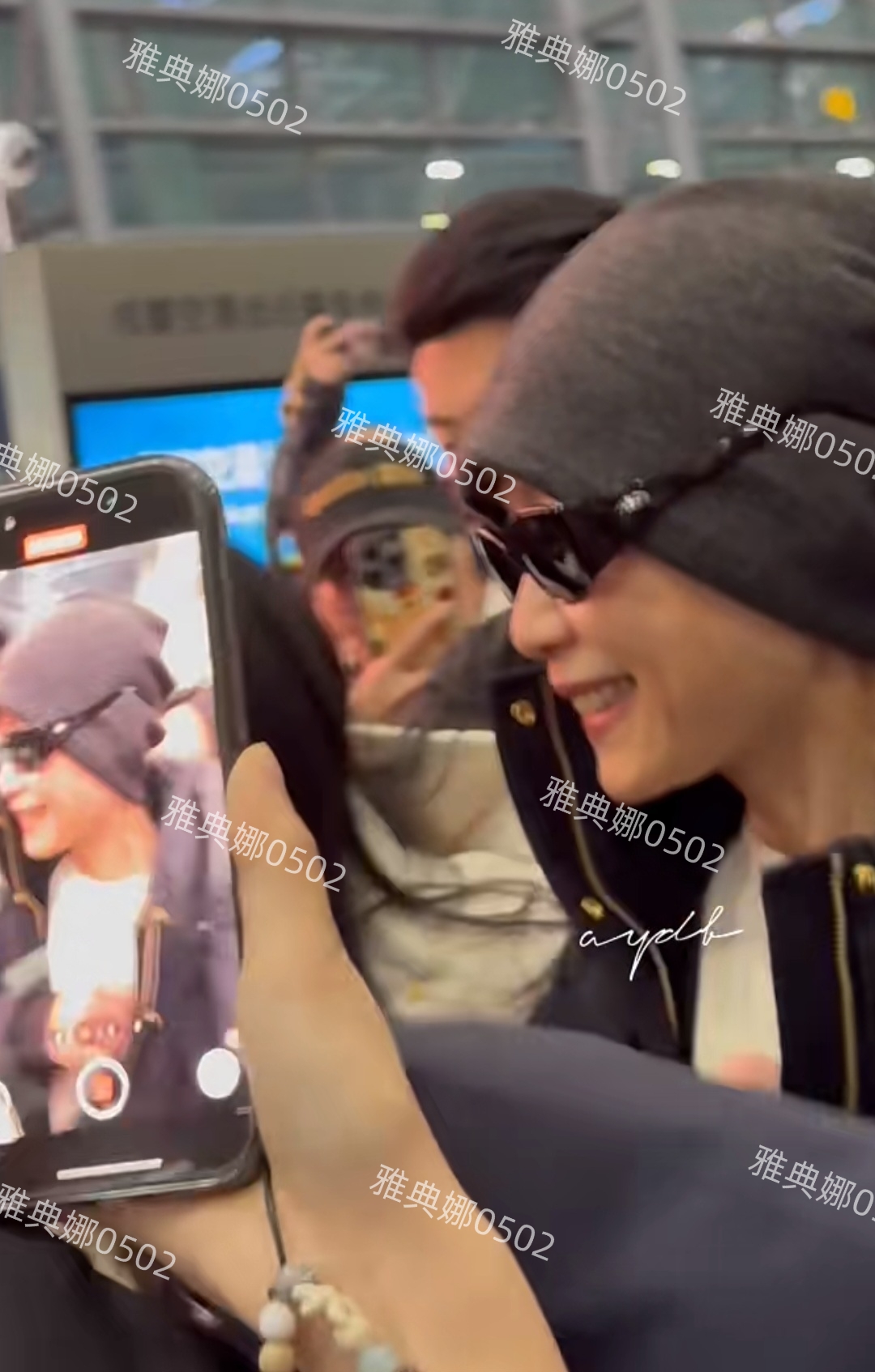 在机场等行李的时候,看见有好多粉丝围着,以为是来了什么帅哥流量明星,没想到是叶童,叶童老师本人好潮好会打扮,她带了一款灰黑色的绒线帽,包住了头发和耳朵,还带了一款大墨镜遮住了半张脸,即使这样她的脸也很小很立体。