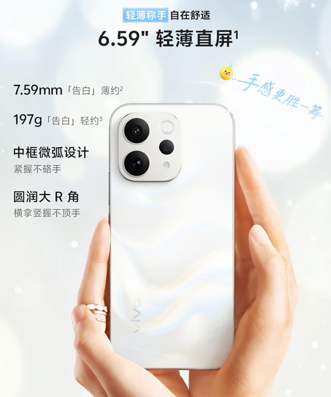 初见vivo S50,最直观的感受便是其在设计美学上的精进。我们手中这台主打的**“告白”配色**,堪称一件灵动的艺术品。它并非单调的纯白,而是白里透金,官方称其灵感源自“冬日暖阳照耀在雪地上”。