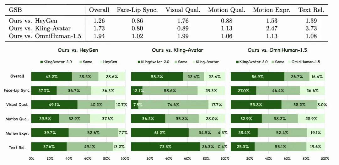 在涵盖 300 个高质量测试案例的严格评测中,KlingAvatar2.0 展现出了令人瞩目的性能: