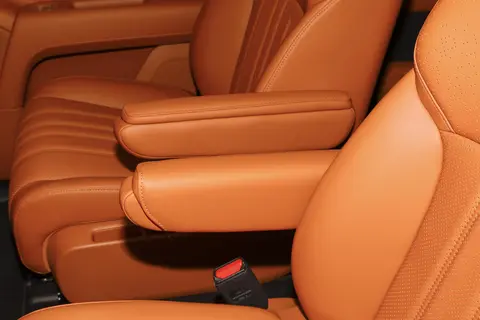 20 英寸的轮毂配 255 毫米宽的轮胎,看着就很稳,上次下雨开在湿滑的路上,刹车和起步都没出现打滑的情况,抓地力确实不错。隐藏式门把手让车身看起来更整洁,而且关门的时候会自动弹回,不用担心夹手。前后都是双层夹胶玻璃,平时开高速的时候,车内噪音控制得很好,孩子在后排睡觉也不会被吵醒。车顶的分段式全景天窗很讨喜,前排和第二排都能单独控制,夏天打开遮阳帘,车内亮堂堂的,孩子总喜欢趴在窗边看风景。