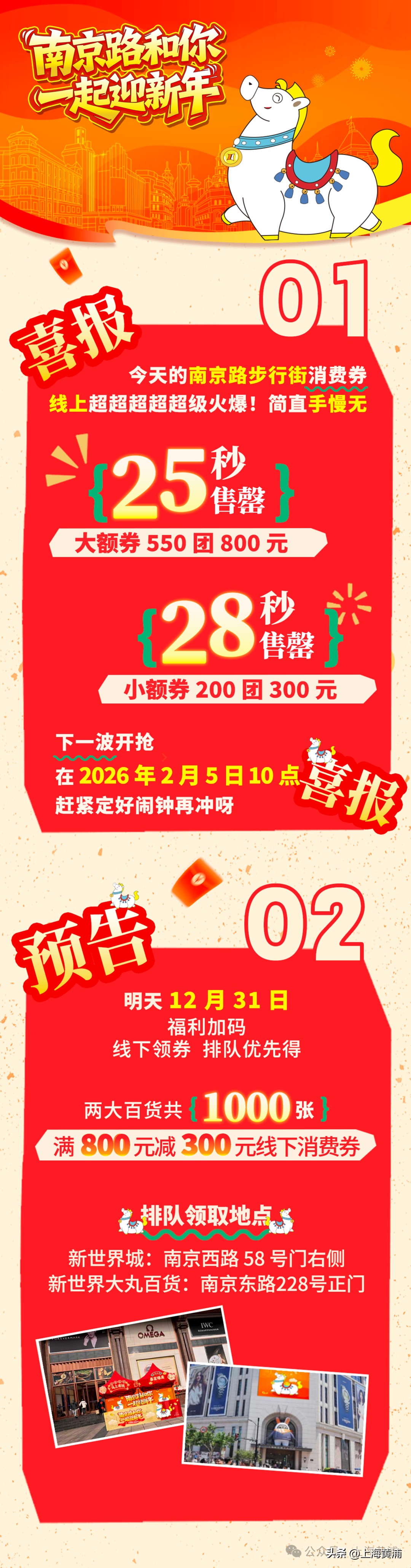 作为“南京路和你一起迎新年”IP活动的重要组成部分,这场消费券派发拉开了南京路跨年迎新盛宴的序幕,叠加美妆快闪、深夜食堂、整点狂欢等多重活动,为市民打造全天候沉浸式跨年体验。数据显示,此前在抖音发放的线上消费券,收到市民追捧,超2万张消费券,均在不到30秒的时间即被抢购一空。